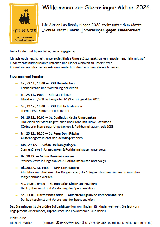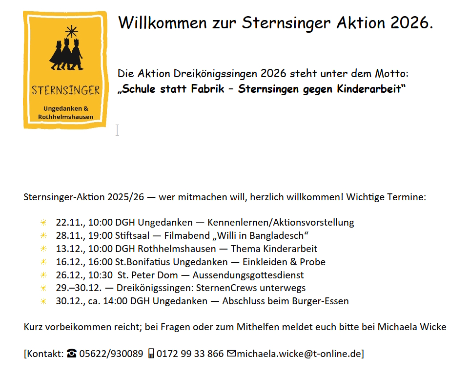 22.11.2025 Start Sternsingeraktion 2026 (siehe unten)