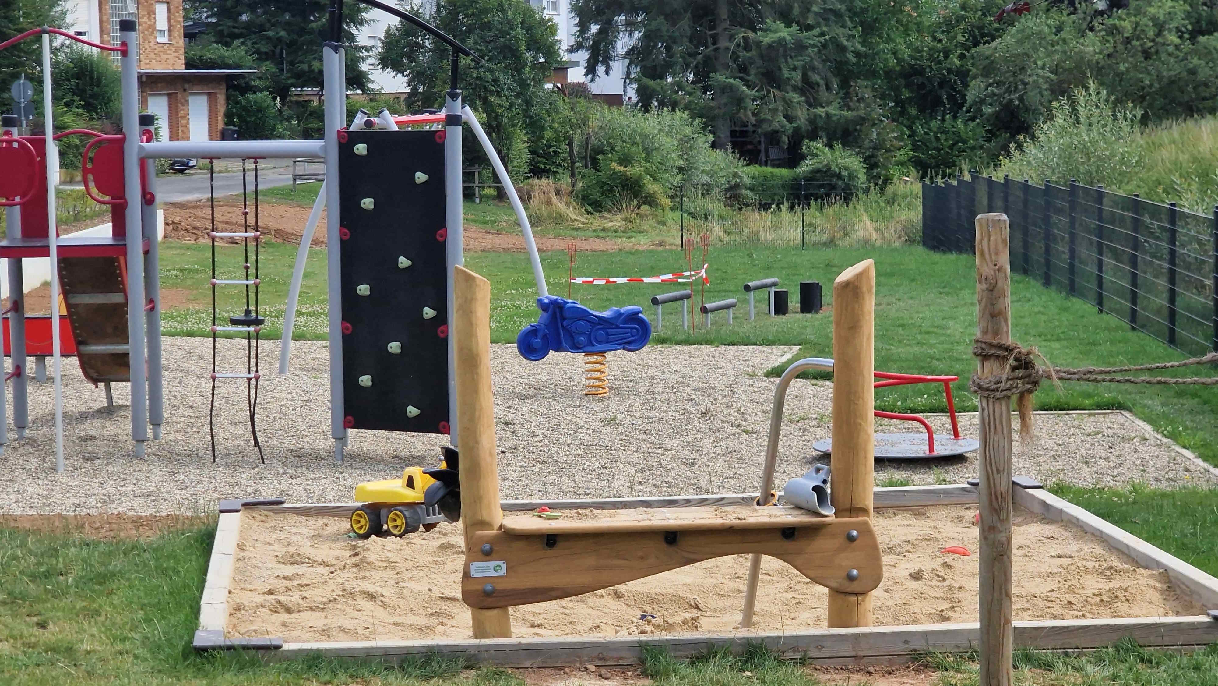 Der Spielplatz ist fast fertig und kann benutzt werden. Es fehlen noch drei unterschiedlich hohe Reckstangen, die aber noch in diesem Jahr aufgebaut werden sollen.