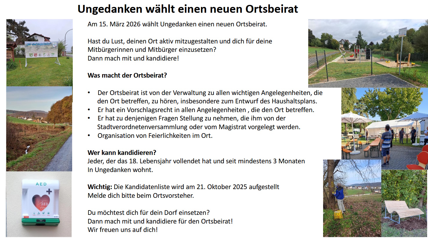21.10.2025 Öffentliche Sitzung für die Kandidatur neuer Ortsbeirat ab 03/26 (siehe unten)