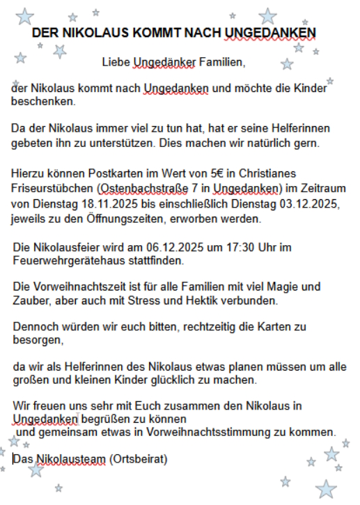 DER NIKOLAUS KOMMT NACH UNGEDANKEN