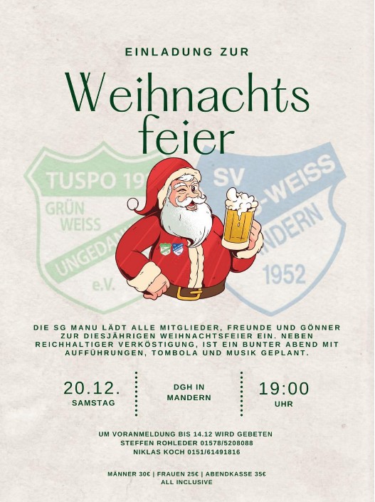 20.12.2025 Weihnachtsfeier SG Ungedanken Mandern (siehe unten)