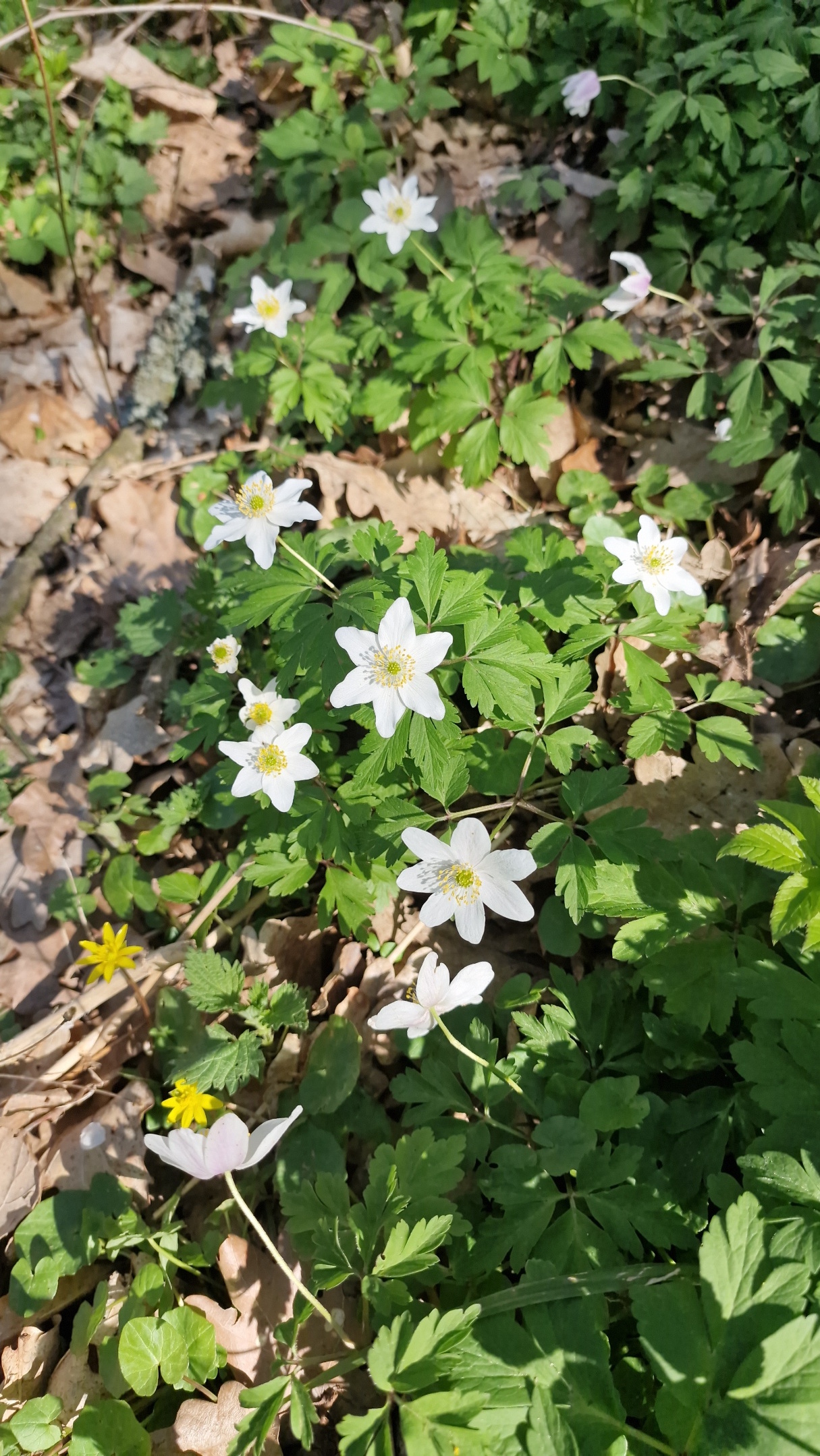 Löwenzahn, Schwarzdorn und Buschwindröschen in voller Blüte.